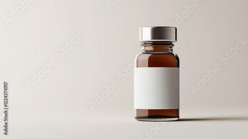 A small glass vial with a white label and silver cap, isolated on a clear background.
