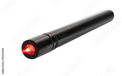 A small red laser pointer is sitting isolated on white or transparent background