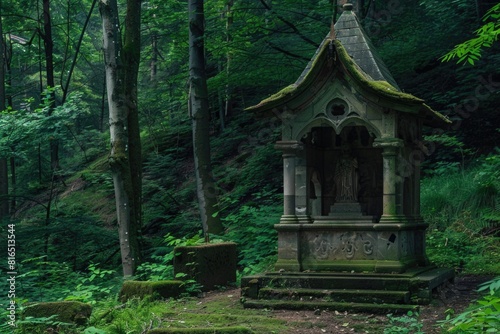 A small shrine in the middle of a forest. Perfect for nature and spirituality themes