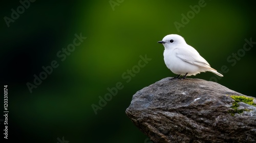 A small white bird perched on a rock.