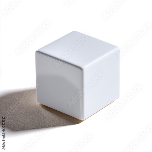 A small, white geometric decorative object e.g., a simple cube, isolated on a pure white background. Modern decor, abstract.