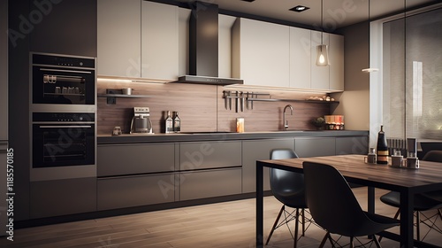 A small yet stylish kitchen with a minimalist design, compact appliances, and sleek finishes.