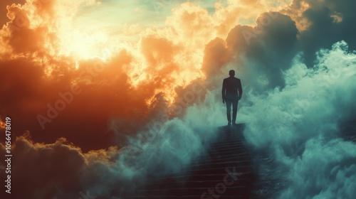 A solitary figure walking into a bright future.