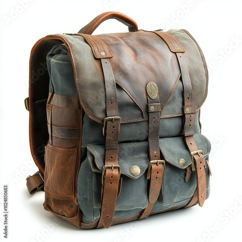 A solitary stylish backpack, ready for adventures, emphasizing its design and utility, isolated on white background.