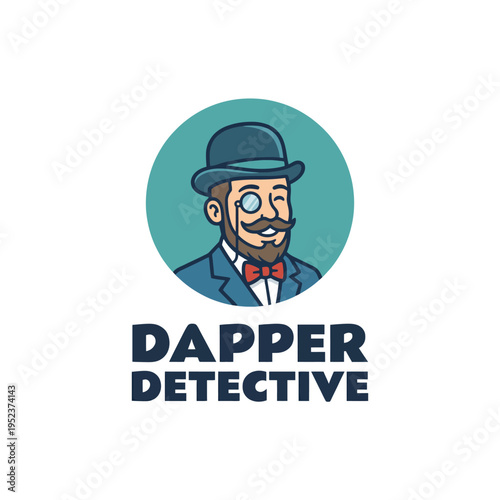 A sophisticated detective character with a bow tie and monocle, representing intelligence and style. Perfect for mystery-themed businesses or brands.