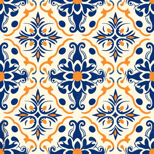 A Spanish Tiles Pattern on a Light Canvas. Generative AI.