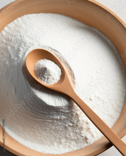 A spoon gently lifts powder from the bowl, showcasing its softness.