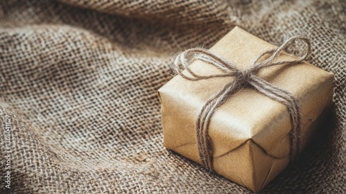 A square present wrapped in textured Kraft paper offers a minimalist and eco-friendly gift packaging option with a rustic natural aesthetic suitable for birthdays, Christmas, or other holidays