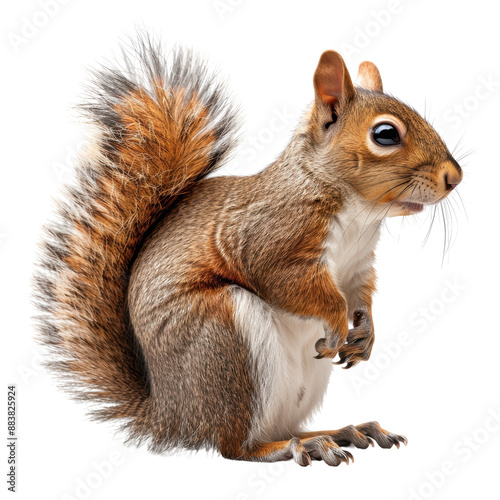 a squirrel standing on hind legs with bushy tail, isolated on white background, transparent background