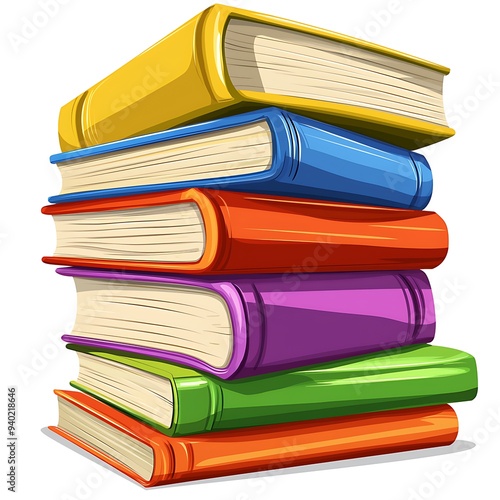 A Stack of Colorful Books Neatly Arranged and Isolated on a Clean White Background, Featuring a Variety of Bright Covers