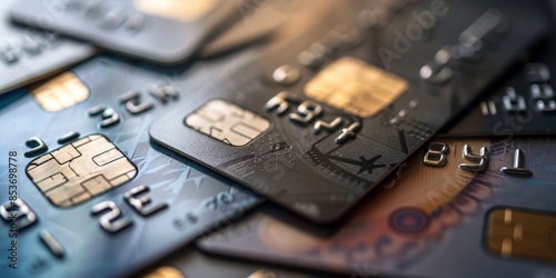 A stack of credit cards and a debit card