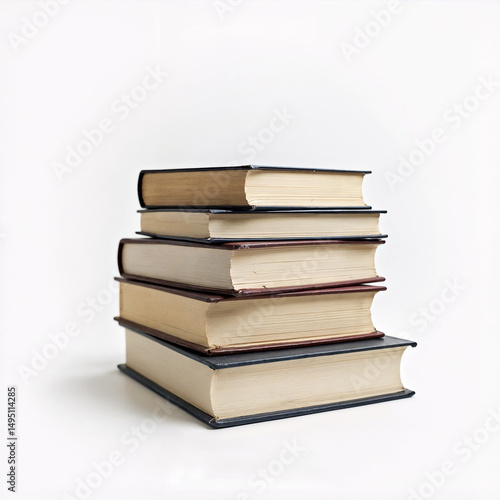 A stack of hardcover books with neutral covers on a white background — classic, intellectual, and timeless.