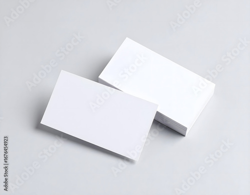 A stack of three blank rectangular cards rests on a textured white surface.