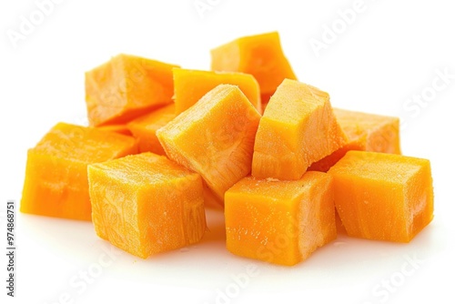 A stack of vibrant orange cubes made from cut up squash, great for creative uses