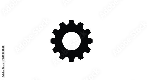 A stark simple image depicts a black gear silhouette against a clean white background