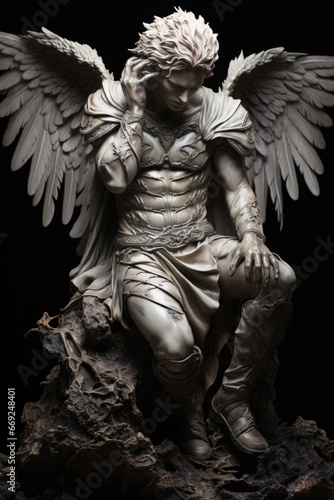 A statue of an angel sitting on a rock