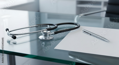 A Stethoscope and Pen on a Doctor's Clean Desk