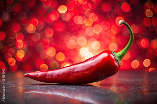 A striking red chili stands out against a vivid red background, captured in high depth of field photography, perfect for culinary and food art inspirations.