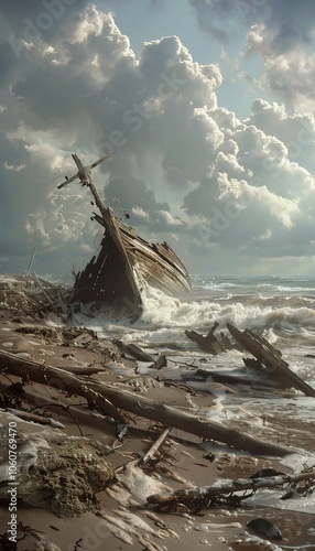A striking shipwreck on the beach nature s power meets historical remnants and serenity