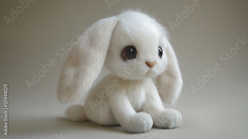 A stuffed dog bunny hybrid with floppy ears and a wagging tail