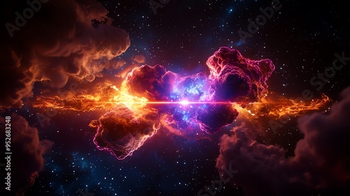 A stunning cosmic scene featuring vibrant clouds and swirling colors, showcasing the beauty of the universe and celestial wonders.
