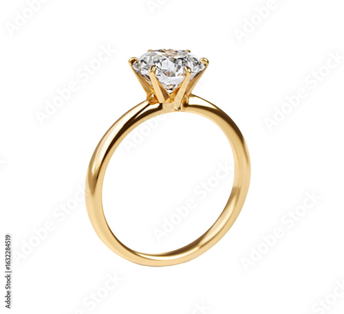 A stunning gold engagement ring featuring a brilliant diamond. Perfect for capturing love and commitment in a romantic setting.