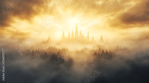 A stunning image of golden cathedrals under an endless horizon, showcasing their majestic towers.
