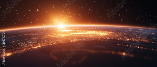A stunning view of Earth from space at sunrise, showcasing vibrant colors and a glowing horizon.