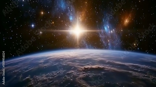 A stunning view of Earth from space, showcasing stars and cosmic beauty.