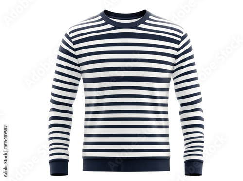 A stylish navy and white striped sweatshirt isolated on a transparent background for fashion designs