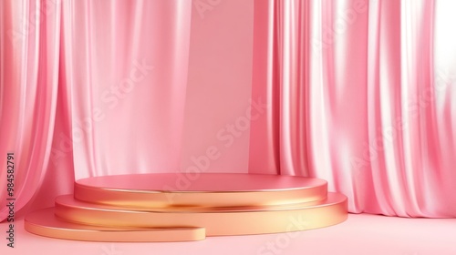 A stylish pink backdrop with golden podiums, ideal for presentations or photo shoots.
