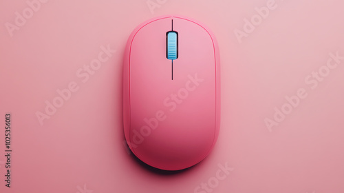 A stylish pink computer mouse on a soft pink background, perfect for modern workspaces or tech accessories.
