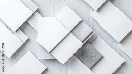 A stylized abstract background featuring overlapping 3D white and grey squares, casting subtle shadows to create depth and a modern aesthetic