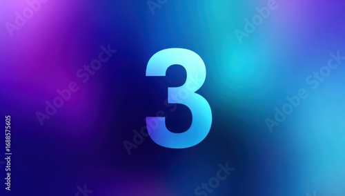 A stylized number three, vibrant blue and white, set against a blurred, gradient background of purples and blues