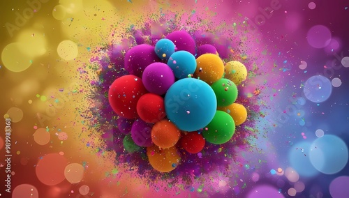 A swirl of scattered particles in a rainbow of colors floating on a bright background, ideal for playful and energetic digital designs, web backgrounds, or animation projects.