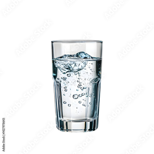 A tall clear glass filled with cold sparkling water and refreshing bubbles