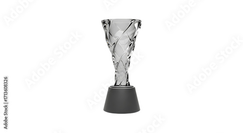 A tall slender modern trophy with a textured metallic surface and a dark base isolated on a black background symbolizing achievement and victory