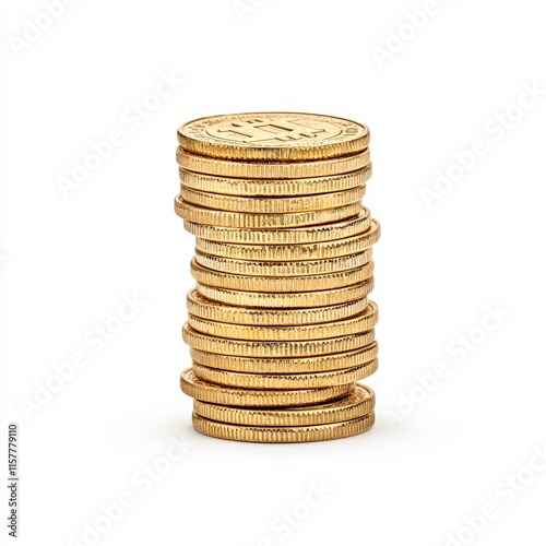 A tall stack of shiny gold coins, symbolizing wealth and prosperity in a modern economic context.