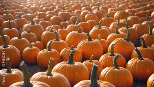 A tapestry of plump orange pumpkins celebrates the joy of the harvest season. Sunlight enhances their vibrant hues, inviting all to explore.