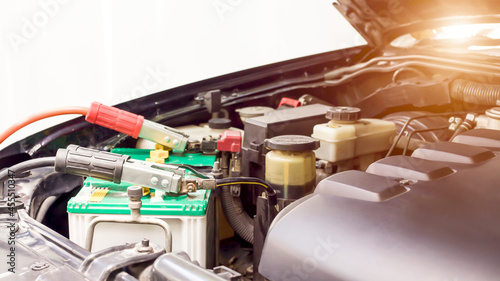 A technician is checking the car battery for availability.;