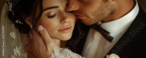 A tender moment between a couple, capturing the emotions of love and intimacy during their wedding ceremony.