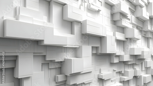 A textured, abstract wall design featuring three-dimensional geometric shapes in white.