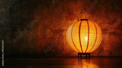 A Thai paper lantern illuminated from within, casting a warm glow on a blank wall with space for your message.