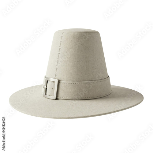 A timeless light grey pilgrim hat with a sleek silver buckle, exuding understated elegance and historical charm against a clean white background.