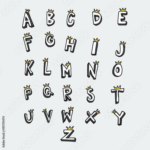 A to Z word with crown vector illustration comic style