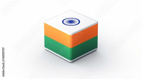 A top-down view of a 3D cube with a glossy finish, adorned with India's national flag, reflecting the country's upward vision