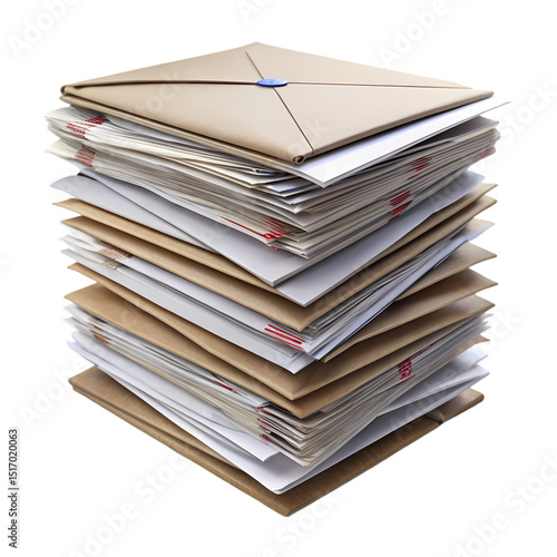 A Towering Stack of Correspondence A Visual Metaphor for Paperwork Overload isolated on transparent baackground