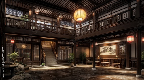 A traditional Chinese courtyard house at night