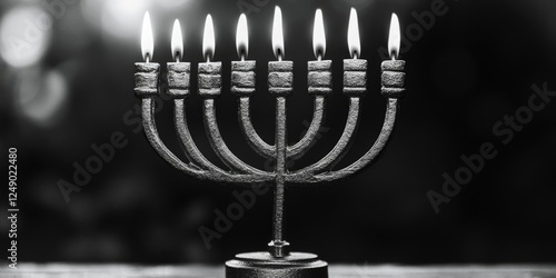 A traditional menorah, a symbolic centerpiece for the Jewish holiday Hanukkah. Its nine candles are lit to represent the miracle of the oil that lasted eight days.