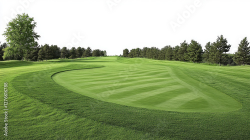 a trailing line down a golf fairway. Green golf course fairway.